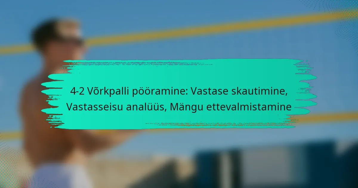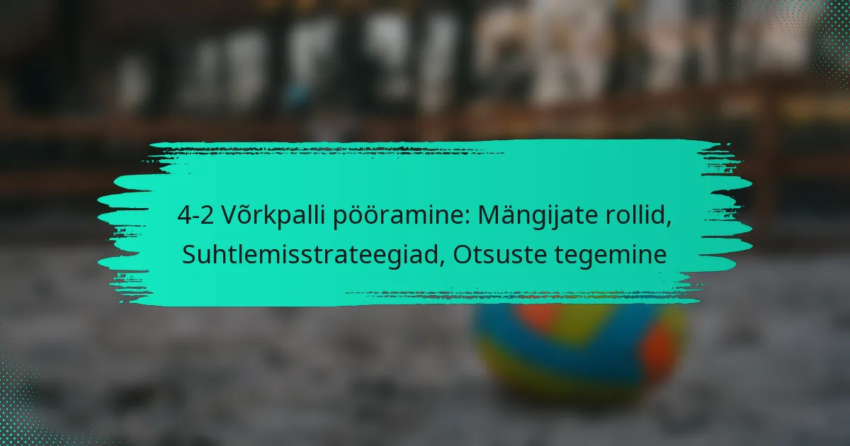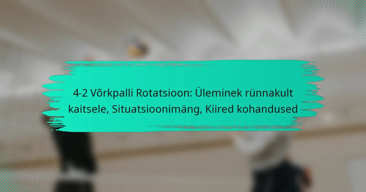 4-2 võrkpalli rotatsioonis on kaks seadjat ja neli ründajat, luues tasakaalustatud ründestrateegia, mis sobib ideaalselt erineva oskustasemega meeskondadele. Oluline on rakendada olukorratreeninguid, et teravdada mängijate võimet navigeerida spetsiifilistes mängusituatsioonides, parandada üleminekuid ja edendada tõhusat suhtlemist.…